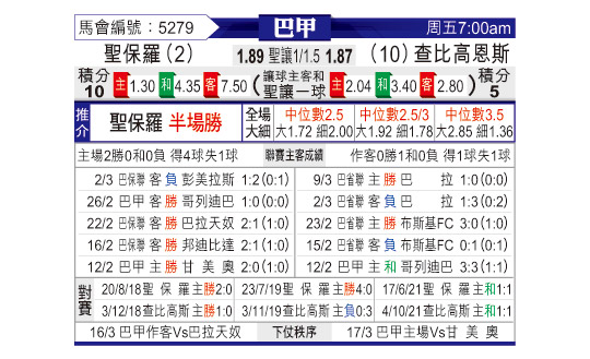 [巴西甲] 圣保罗vs沙佩科恩斯