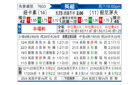 [英超] 纽卡斯尔联vs伯恩茅斯