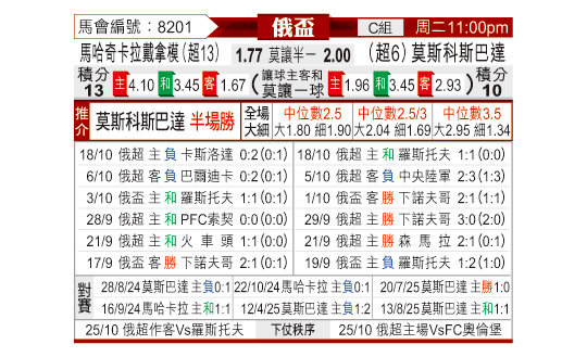 [俄杯] 马哈奇卡拉vs莫斯科斯巴达