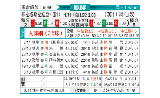 [欧冠] 布拉格斯拉维亚vs阿森纳