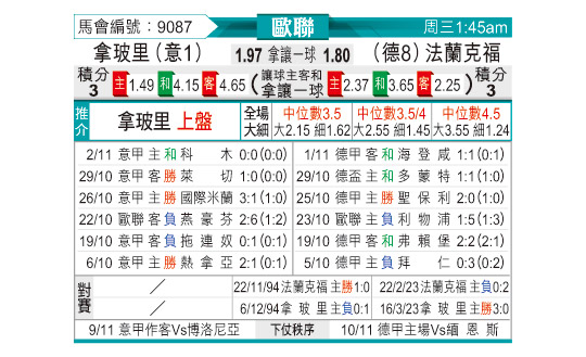 [欧冠] 那不勒斯vs法兰克福