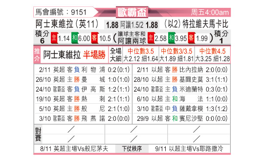 [欧联杯] 阿斯顿维拉vs特拉维夫马卡比
