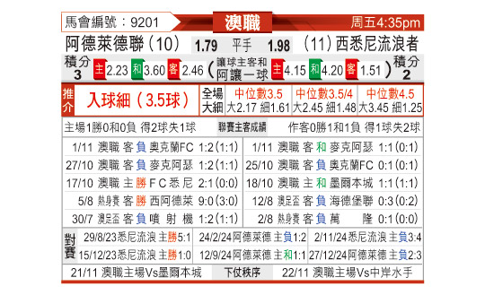 [澳超] 阿德莱德联vs西悉尼流浪者