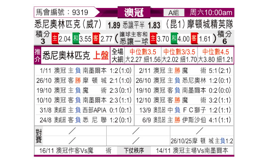 [澳锦标] 悉尼奥林匹克vs摩顿湾联