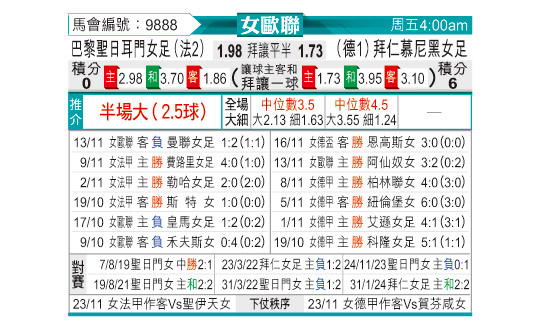 [欧女杯] 巴黎圣日耳曼女足vs拜仁慕尼黑女足