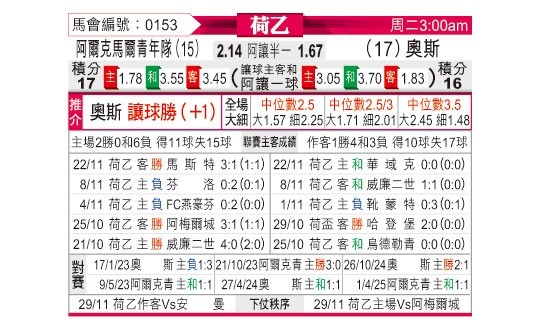 [荷乙] 阿尔克马尔青年队vs奥斯