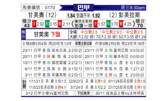 [巴甲] 格雷米奥vs帕尔梅拉斯