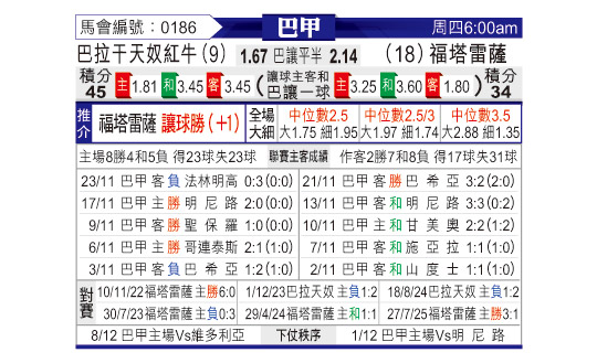 [巴甲] 布拉干蒂诺RBvs福塔雷萨