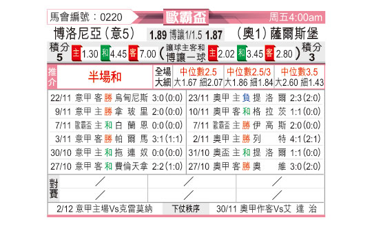 [欧联杯] 博洛尼亚vs萨尔茨堡