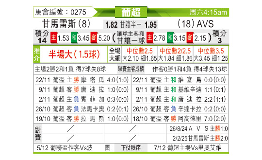 [葡超] 吉马良斯vsAVS俱乐部