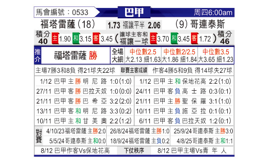 巴西甲 格雷米奥vs弗鲁米嫩塞