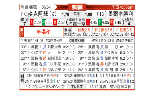 [澳超] 麦克阿瑟FCvs墨尔本胜利