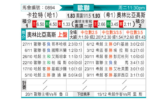 [欧冠] 阿拉木图凯拉特vs奥林匹亚科斯