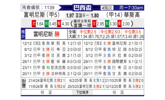 巴西杯 弗鲁米嫩塞vs瓦斯科达伽马