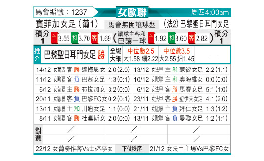 [欧女杯] 本菲卡女足vs巴黎圣日耳曼女足