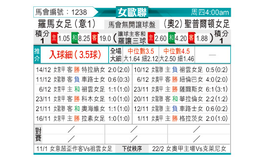 [欧女杯] 罗马女足vs圣珀尔滕女足
