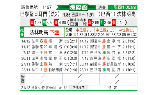 [洲际杯] 巴黎圣日耳曼vs弗拉门戈