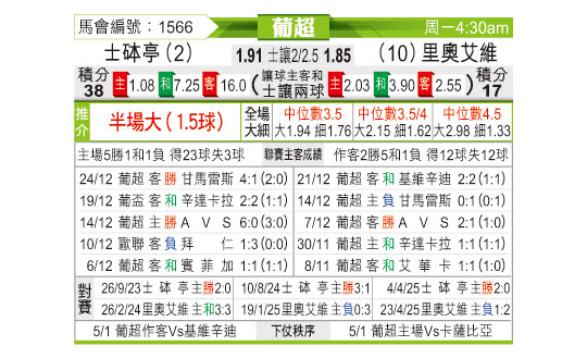 [葡超] 葡萄牙体育vs里奥阿维