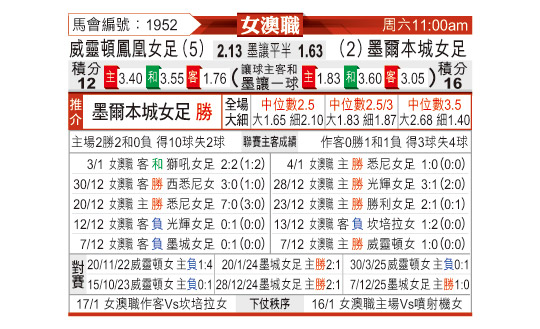 [澳女联] 惠灵顿凤凰女足vs墨尔本城女足