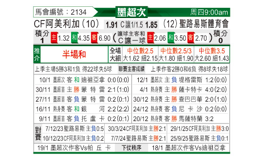 [墨超] 墨西哥美洲vs圣路易斯竞技