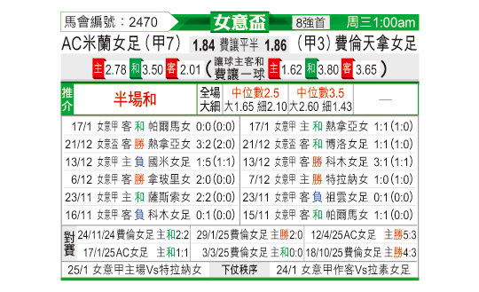 [意女杯] AC米兰女足vs佛罗伦萨女足