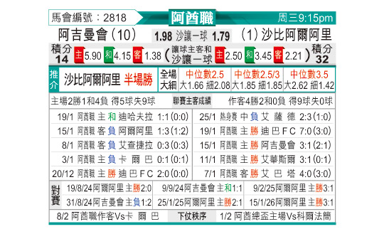 [阿酋超] 阿积曼vs迪拜青年国民