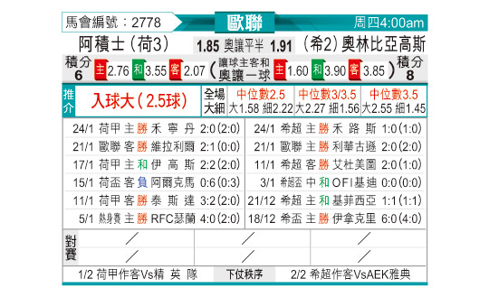 [欧冠] 阿贾克斯vs奥林匹亚科斯