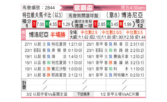 [欧联杯] 特拉维夫马卡比vs博洛尼亚