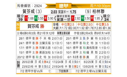 [德甲] 霍芬海姆vs柏林联合