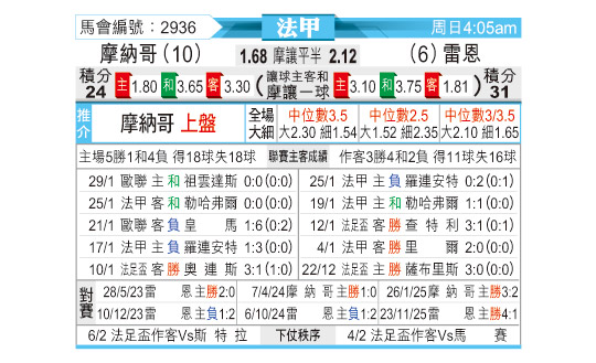 [法甲] 摩纳哥vs雷恩