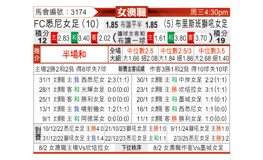 [澳女联] 悉尼女足vs布里斯本狮吼女足