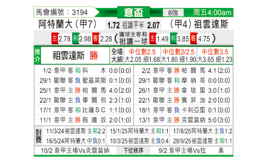 [意杯] 亚特兰大vs尤文图斯