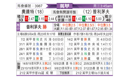 [英甲] 莱顿东方vs普利茅斯