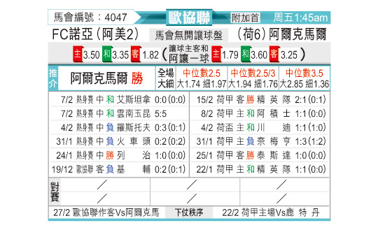 [欧会杯] 诺亚FCvs阿尔克马尔