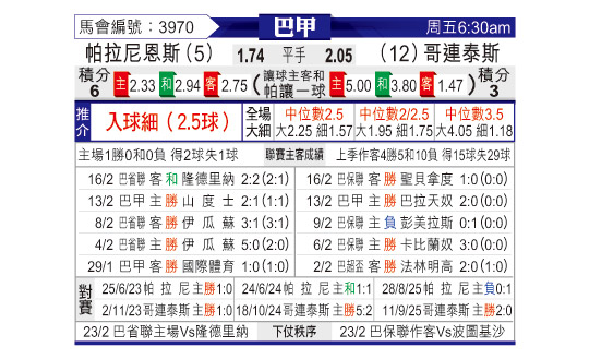 [巴西甲] 巴拉纳竞技vs科林蒂安