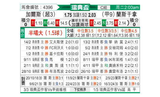 [瑞典杯] 哥德堡盖斯vs兰斯科罗纳