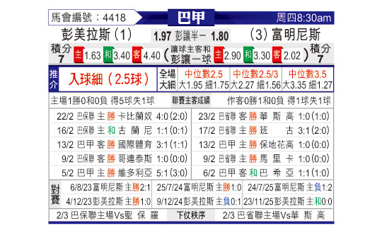 巴西甲 帕尔梅拉斯vs弗鲁米嫩塞