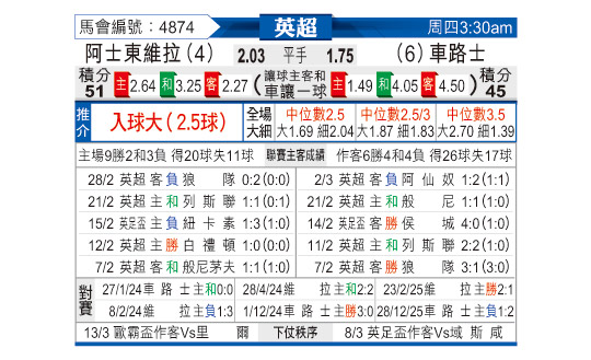 [英超] 阿斯顿维拉vs切尔西
