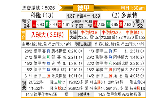 [德甲] 科隆vs多特蒙德