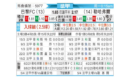 [法甲] 巴黎FCvs勒阿弗尔