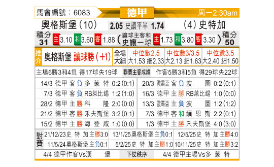 [德甲] 奥格斯堡vs斯图加特