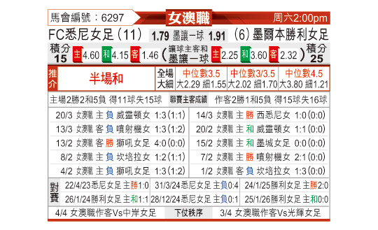 [澳女联] 悉尼女足vs墨尔本胜利女足