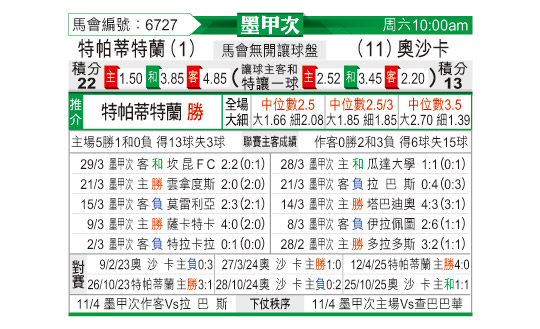 [墨西甲] 帕蒂特兰德莫雷洛斯vs瓦哈卡