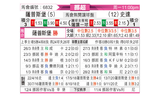 [挪超] 萨普斯堡vs斯达