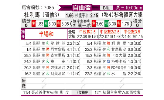 [自由杯] 托利马体育vs秘鲁体育大学