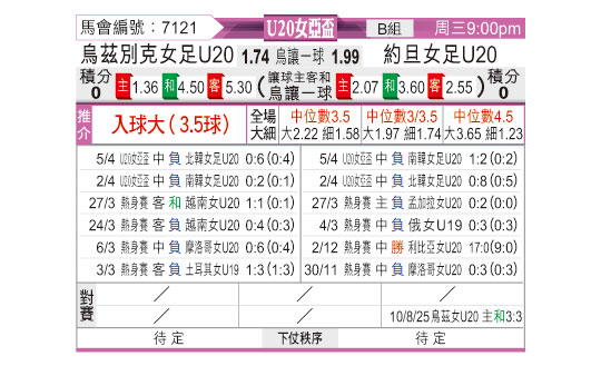 [亚女青] 乌兹别克斯坦女足U20vs约旦女足U20