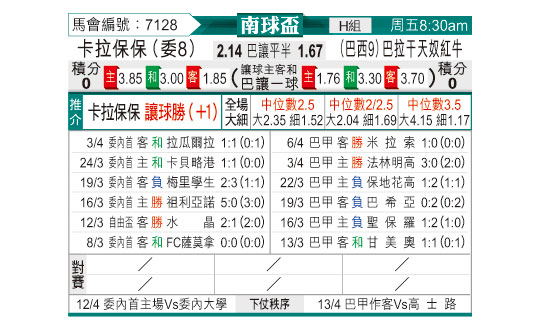 [南美杯] 卡拉波波vs布拉干蒂诺RB