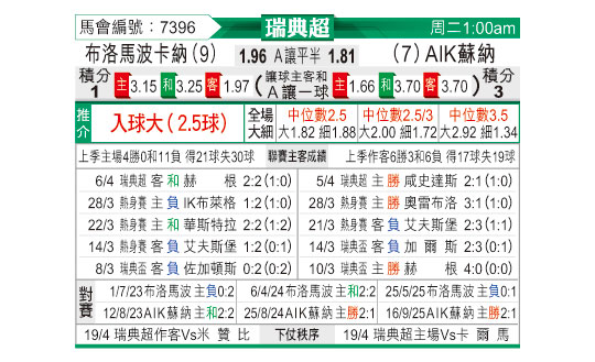 [瑞典超] 布洛马波卡纳vs索尔纳