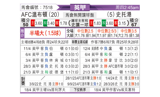 [英甲] AFC温布尔登vs斯托克港