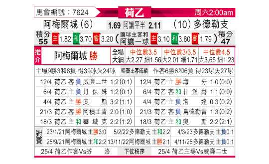 [荷乙] 阿尔梅勒城vs多德勒支